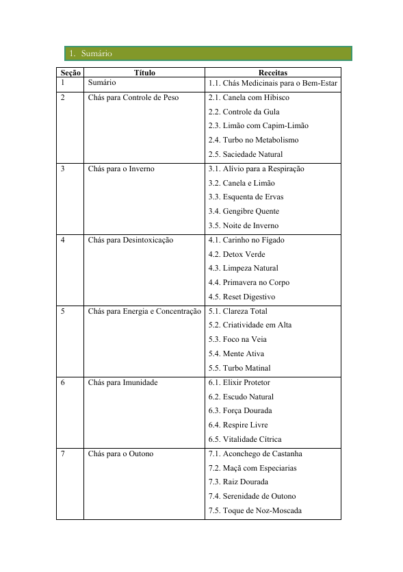🫖 As receitas são descritas com clareza, indicando quantidade dos ingredientes, modo de preparo e sugestões práticas de consumo.